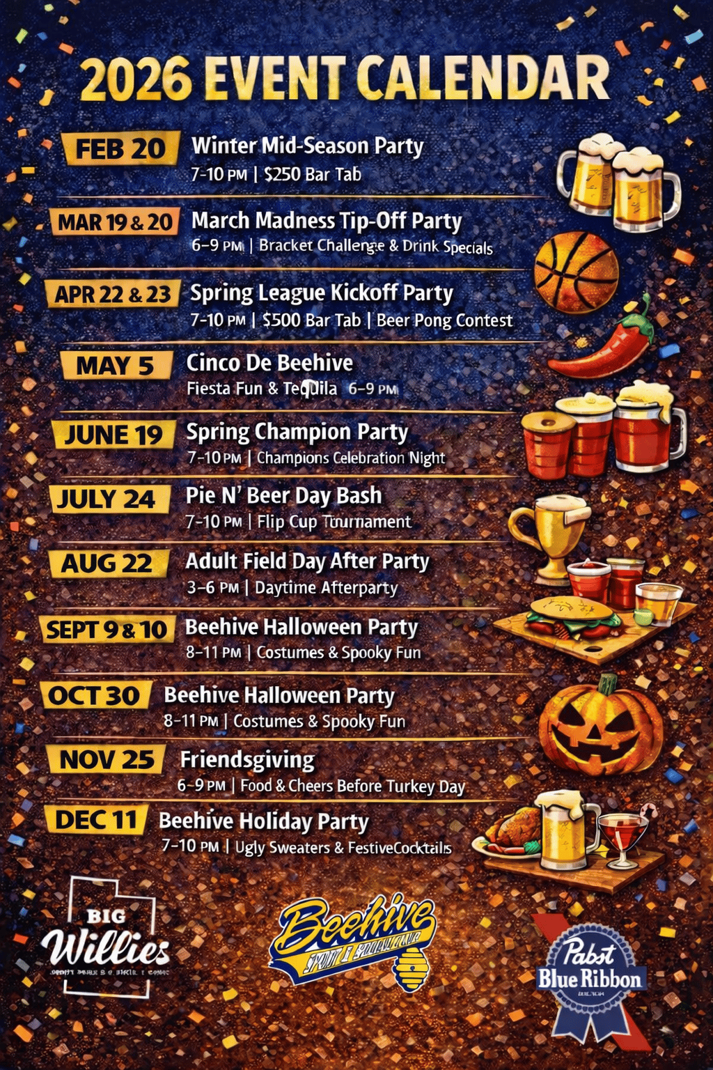 Every year we get together to drink, dance and share the memories we made through Beehive Sports. This year is extra special because Beehive turns 15 years old! If you've been a part for a season or seventy seasons, come celebrate!